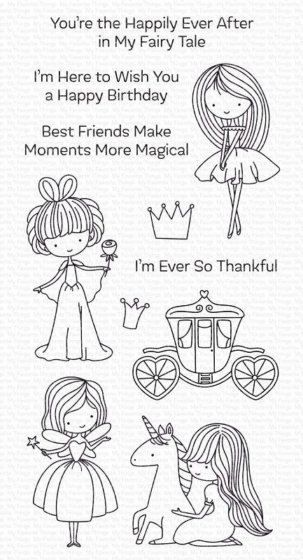 For my card, I reached for one of the sweetest MFT stamp sets: Pretty Princesses. There’s just something about these girls that instantly brings a smile to my face.